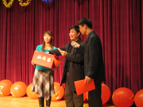 在联欢会上焦书记和科技处赵处长、教师代表也为大家抽取了幸运奖