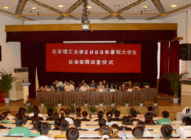 2005年7月12日,北京理工大学暑期社会实践团出发仪式在7号楼报告厅隆重举行。