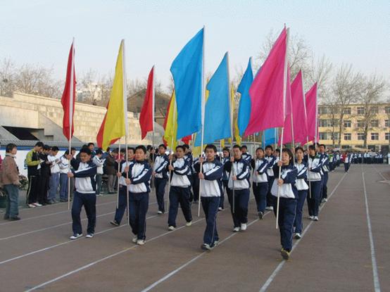 音乐响起,开幕式在激昂的运动员进行曲中进行,不同年级不同专业组成的方阵队以整齐的步伐、响亮的声音向主席团的各位老师展示精神面貌,彩旗队和鲜花队在阳光下显得格外的精神抖擞。