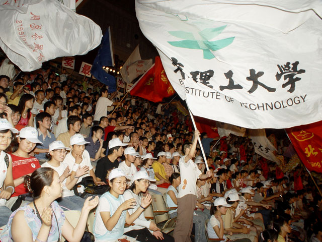 我校近200名师生和来自其他首都高校的师生、各界人士共同在现场体验了这一激情时刻,口号宣传歌曲的悠扬旋律回荡在体育馆大厅内。