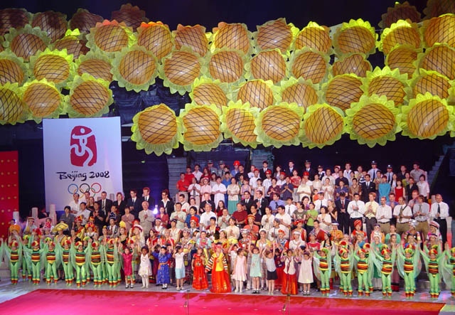 发布仪式上播放了主题口号宣传片,刘欢、那英演唱了口号宣传歌曲。发布仪式后,一台别致的歌舞晚会随后举行。魔幻般的舞台效果、欢快的节奏、轻盈的舞姿使现场观众沉浸在奥林匹克的欢乐之中。