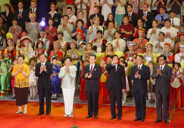 中共中央政治局常委李长春出席仪式并公布口号,中共中央政治局委员、北京市委书记、北京奥组委主席刘淇主持仪式,国务委员、北京奥组委第一副主席陈至立出席仪式。