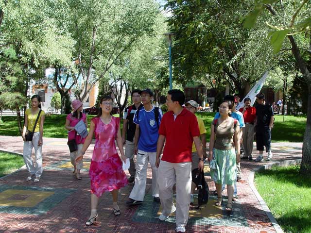 科考队员在参观磁窑堡煤矿的花园式矿区。