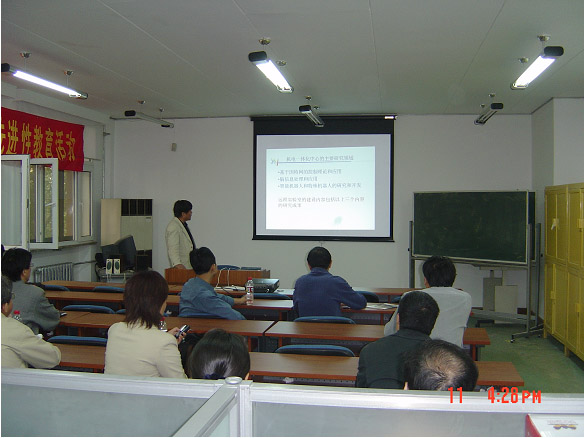 现场观摩会后,大家还参观了由一院与三院共同承建的教育部“基于因特网的远程控制、测量与决策系统”研究生开放实验室。一院与三院项目负责人分别介绍了实验室建设进展情况。建设完成后实验室的主要特点是实现基于网络的远程控制及检测试验,用户利用因特网或校园网访问实验室,进行远程控制、操作实验以及控制算法等科学研究,而且不受时间及地点的限制,用户可以随时随地进行实验,达到资源共享、协同工作、远程监测、集中管理等效果。