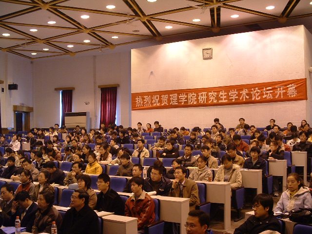 葛院士的学术报告在掌声中结束,理学院研究生学术论坛开坛仪式也宣告圆满结束。理学院2005年研究生学术论坛之物理分论坛、化学分论坛、数学分论坛、力学分论坛随即展开。
