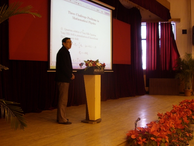 作为开坛仪式上的重头戏,葛墨林院士作了《数学、物理中的三个难题》的学术报告。葛墨林院士用深入浅出的语言介绍了数学、物理研究中的三个世界级难题,鼓励广大研究生做学术要注意质而非量,在做好本职工作的前提下要勇于向世界性的难题冲击,只有放眼世界,勇于挑战,才能取得更大的学术成果,否则永远触摸不到学术巅峰。