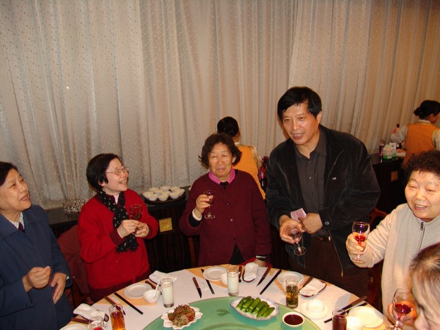 党委副书记侯光明向两院院士、长江学者、学科带头人的夫人们祝酒。