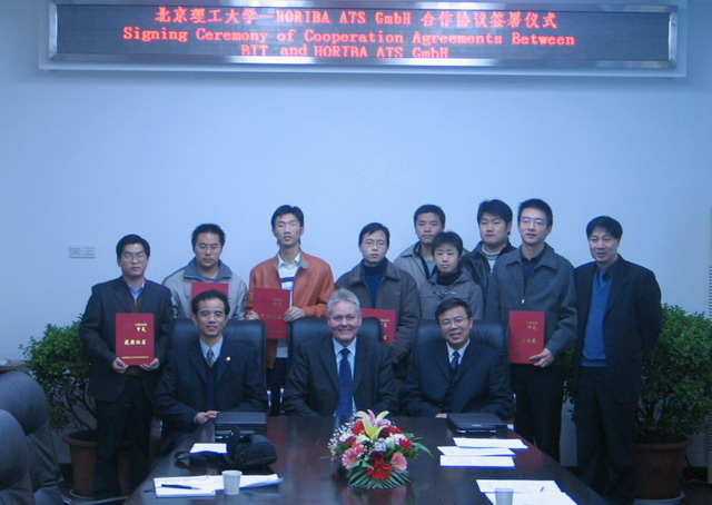 会上,孙逢春副校长和卡尔海曼先生代表双方正式签署了合作协议。根据协议, HORIBA ATS公司在北京理工大学设立“HORIBA ATS”奖学金,用于奖励特别是在汽车试验技术研究方面表现突出的学生。此外,双方还将开展共同建立联合测试试验中心和培训中心等合作项目。