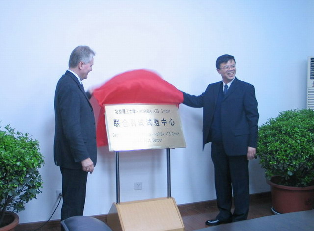 赵平副书记和卡尔海曼先生为北京理工大学-HORIBA ATS联合测试试验中心揭牌
