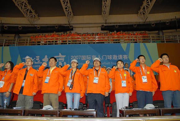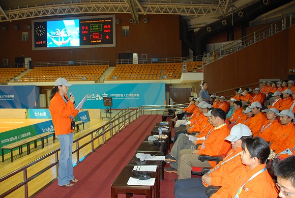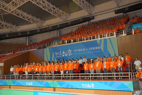 9月13日至16日,“好运北京”2007 国际盲人门球邀请赛将在北京理工大学体育馆举行。为了确保比赛的顺利进行,9月9日下午,北理工奥运场馆志愿者团队举行了赛前动员誓师大会及发奖仪式、紧急疏散的活动演练。