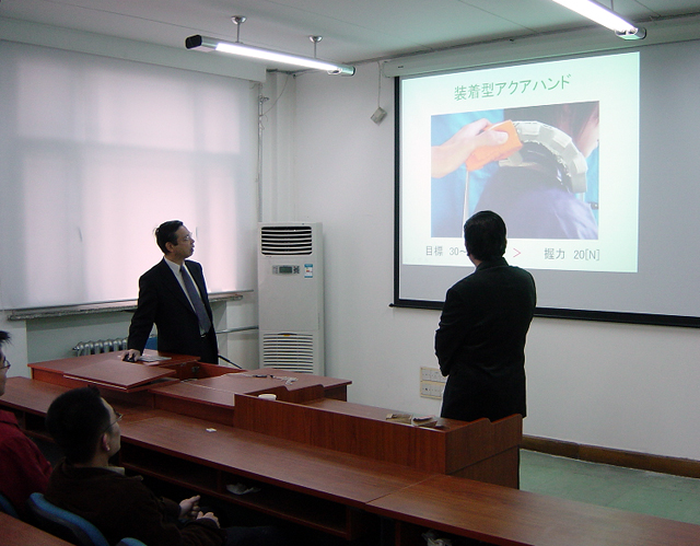 我校顾问教授、日本东京工业大学北川能教授于3月31日到4月8日来我校交流讲学。4月3日北川能教授就自己在2005年研究开发的特种机器人进行了讲学;受到听课师生的欢迎。课后北川能教授参观了机械与车辆工程学院机电一体化中心实验室及由中心实验室研制的跳跃机器人,双方在学术上进行了充分的交流。4月7日李志祥常务副校长会见了北川能教授,对北川能教授长期致力于北京理工大学和东京工业大学之间的交流表示赞赏。