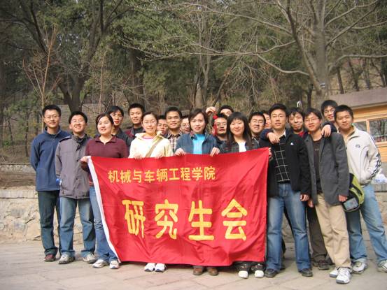 2006年4月8日,在机械与车辆学院研究生会号召和组织下,全院20名研究生志愿者来到北京石景山区八大处参加“我为奥运添绿”公益植树活动,以实际行动践行“八荣八耻”,用自己的双手播撒绿色的未来。