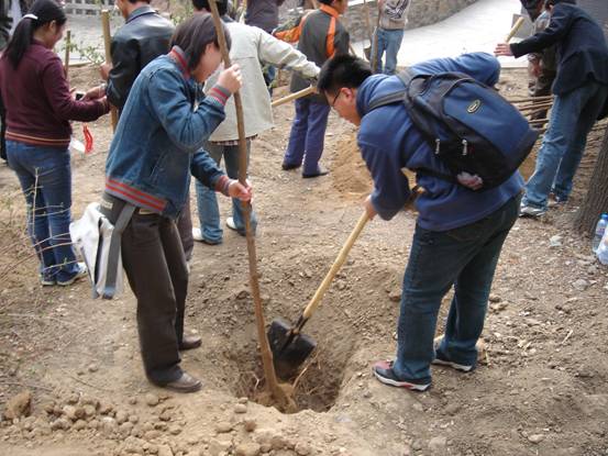 这次活动是机械与车辆工程学院开展学习胡锦涛总书记关于社会主义荣辱观重要论述的系列活动之一,又时值全国义务植树25周年,更是激发了同学们植树的积极性。