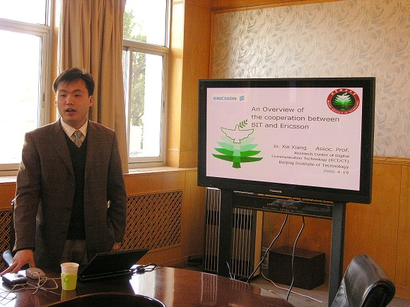 数字通信技术中心的谢湘副教授详细介绍了十年来双方的合作内容和成果,Dan Redin先生高度评价了北京理工大学-爱立信数字通信技术研究中心的研究工作。