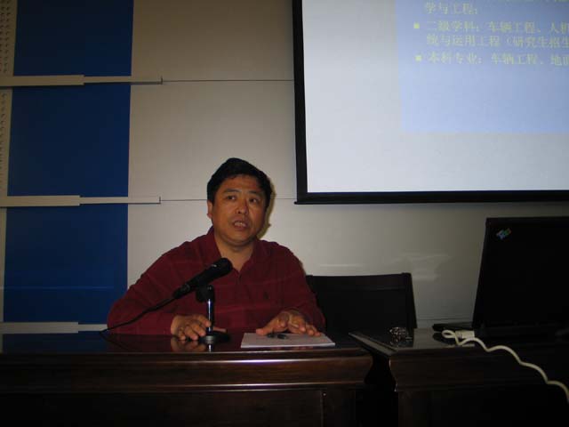 车辆工程系副主任、汽车实验室主任陈慧岩教授就车辆工程系的历史沿革、学科建设、专业设置、科研成果、专业创始人及主讲教授的情况作了精辟的报告和演示。