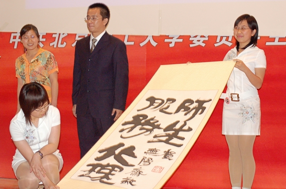 随后,DV协会主席陈杰浩介绍协会一年发展历程,并播放了DV协会一年介绍片。此次活动得到了多个兄弟学院、社团的鼎力支持,无阳斋书画社向软件学院DV协会赠送了“服务北理师生,繁荣校园文化”的字画。