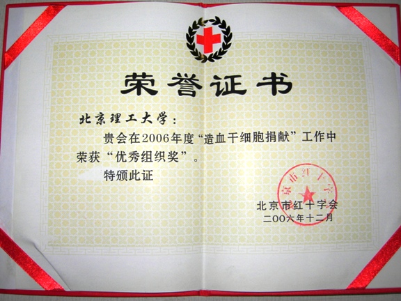 近日,北京理工大学获得了由北京市红十字会、中国造血干细胞捐献者资料库北京管理中心颁发的“造血干细胞志愿活动优秀组织奖”,生命科学与技术学院青年志愿者协会在这项公益事业中做出了重要贡献。