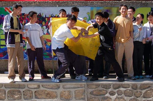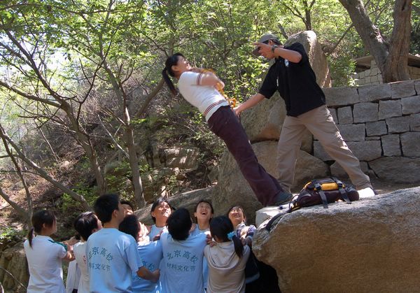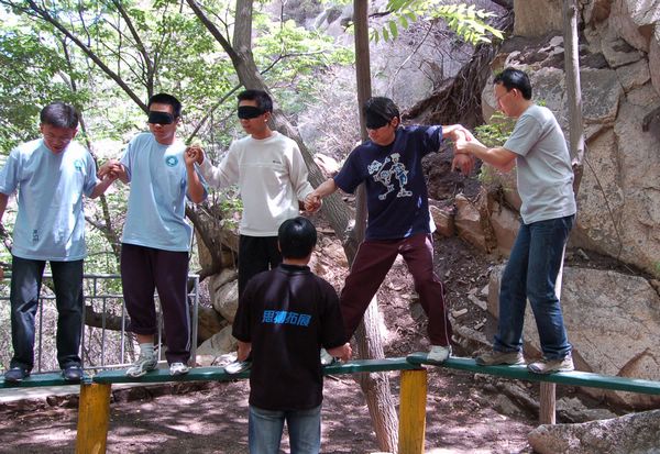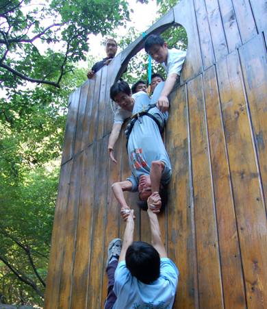 继宿舍向心力大赛之后,由学生工作处心理咨询中心主办,机电学院和心理健康协会承办的北京理工大学2006年“5 25”心理健康节的又一特别体验活动——野外拓展训练,于5月28日在昌平双龙山拓展训练基地进行。