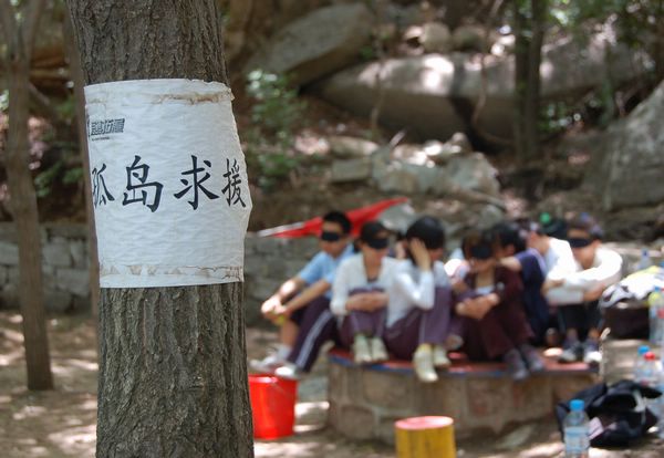 在经历了激烈的体能和智能项目考验后,“孤岛求援”让队员感受沟通的重要性,构建交流的渠道:队员被分别带到不同的岛屿,成为盲人、哑人和健全人,每个岛上的人分别有不同的任务书,如果每个队只局限于完成自己小任务,忽略各岛之间的合作,那共同救援盲人的总目标则无法实现。