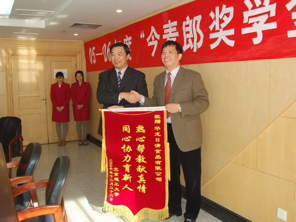颁奖仪式的最后,侯书记代表北京理工大学向华龙日清食品有限公司赠送了锦旗。