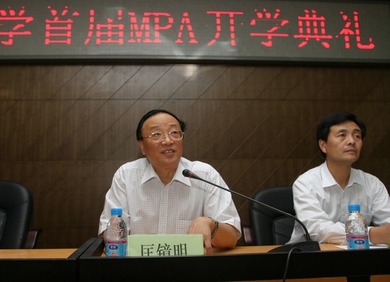 开学典礼在庄严的国歌中开始。匡镜明校长代表学校对首届MPA学生入学表示热烈的祝贺,对一直支持我校MPA教育事业发展的全国MPA教育指导委员会和朱立言秘书长表示衷心的感谢。匡校长首先介绍了北京理工大学的历史沿革、综合实力与办学特色。匡校长强调,北京理工大学一贯重视管理学科的发展,学校将以MPA教育启动为契机,继续加大投入力度,同时他对学校相关院系和职能部门提出要求,希望能够立足高起点,向更高更新的办学标准看齐,努力办好MPA教育。匡校长对首届MPA学生提出了殷切期望,他指出北京理工大学曾经培养了许多令母校引以为荣的杰出校友,希望MPA学生能够刻苦学习、严格要求自己,成为其中的一员,为加强党的执政能力、为国家的繁荣昌盛做出贡献。