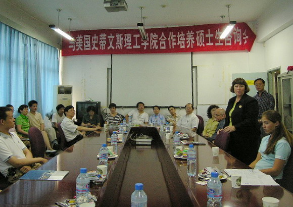 2006年6月19日下午,美国史蒂文斯理工学院Moreen Weatherall副校长率领代表团一行四人访问我校,受到杨宾副书记、副校长的亲切会见。