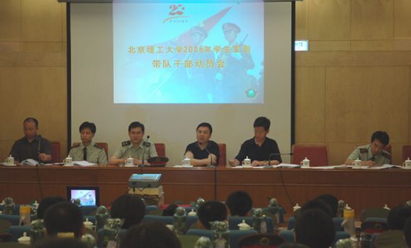 7月1日上午,北京理工大学2006年学生军训带队干部动员会在国际交流中心3层报告厅举行,党委副书记、副校长杨宾,学生工作处处长、武装部部长、军训旅总指挥刘明奇,国防生选培办主任王春志、保密处处长张振华以及部分学院的党委副书记出席了会议,来自学生工作处、校团委、12个学院的专职学生工作干部及部分2002级优秀毕业生担任今年的带队干部,并参加了此次会议。会议由学生处处长、军训旅总指挥刘明奇主持。