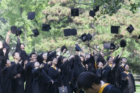 高高抛起的学位帽象征着他们美好的未来前程!