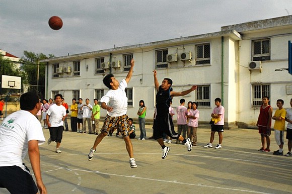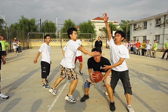 在紧张的干训之余,校团委干训会务组为学员们举行了一场别开生面的篮球友谊赛。