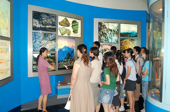 展览馆分为勘探开发厅、油田发展厅和科技成就厅3个展厅。勘探开发厅内共有各种图表、 实物、模型1000余件,展现了石油的形成、石油的生产过程以及5000多种石油和天然气的产品;
