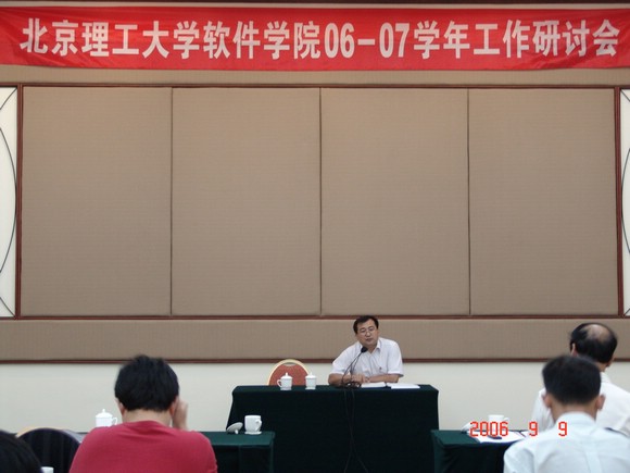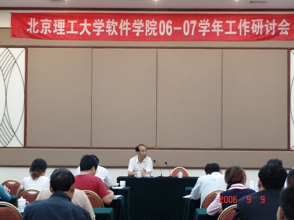 2006年9月9日,在第二十二个教师节到来之际,软件学院召开了2006-2007学年工作研讨会。上午全体大会由学院党委书记王树武主持。学院软件工程系、数字媒体技术系、信息安全技术系的系主任分别在大会上介绍了各系的十一五规划。随后,常务副院长丁刚毅就学院十一五规划及本学年的工作重点做了介绍,副院长陈朔鹰、副书记副院长陈旵明分别就本学年的教学工作及学生工作的重点做了介绍及安排。