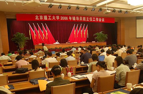 为进一步加强我校辅导员、班主任工作,做好迎接新生的准备工作,9月12日至13日,学生工作处、教务处共同组织召开了“北京理工大学2006年辅导员、班主任工作会”。党委书记焦文俊、党委副书记、副校长杨宾、副校长孙逢春、党办主任王文生、学生工作处、教务处、团委、保卫处等部门负责人,各学院主管学生工作的副书记副院长出席了会议,全校2006年新聘班主任、2005-2006学年优秀班主任、新生辅导员共180余人参加了大会。大会主要内容包括班主任工作经验交流、对2006年新生辅导员、新聘班主任进行业务培训、各学院布置迎新工作、表彰2005-2006年度优秀班主任等。会议共分三个单元进行,由学生处处长刘明奇主持。