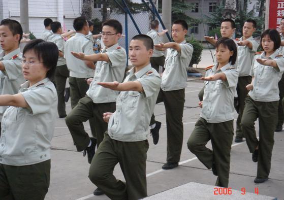 国防生的训练不同于普通生的训练,普通生要求达到的强度和标准,我们国防生不但要圆满完成,而且要高标准的超额完成!在进行完第二天简单的开训典礼后,国防生的军训开始走上正轨,各种训练动作开始逐步的到位。十五名教官带领自己所在的班开始分开训练,从最基本的军姿开始,每个细节都要求的十分严格,及时纠正了原来存在于同学们中间的一些小毛病,并提出了更高的要求。