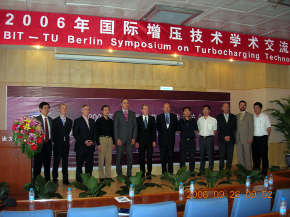 9月25日上午,由中国内燃机学会、北京理工大学、柏林工业大学主办的“2006年国际增压技术学术交流会暨北京理工大学柏林工业大学增压技术研讨会(BIT — TU Berlin Symposium on Turbocharging Technology)”在北京理工大学隆重召开。代表国际一流水平的来自高等院校、企业与科研院所的知名专家学者汇聚一堂,交流和探讨涡轮增压器的研究现状和技术发展趋势。出席此次会议的领导有:北京理工大学副校长、北京市内燃机学会副理事长赵长禄教授,德国柏林工业大学教授、我校兼职教授、本次大会主席H.Pucher博士,中国内燃机学会副理事长、北内集团总公司董事长马童立先生,中国内燃机学会常务副秘书长计维斌先生,北京市内燃机学会副理事长、北京现代副总经理李继凯先生。另外,清华大学、同济大学、上海交通大学、北京工业大学、哈尔滨工程大学、山东大学、德国亚琛工业大学、德国博格华纳增压系统公司、德国大众汽车公司、德国FEV公司、德国IAV公司、汉堡联邦国防大学、湖南天雁机械公司,寿光康跃增压器有限公司等院校与企业也参加了本次会议。国际交流合作处汪滢副处长,机械与车辆工程学院张英副院长,左正兴副院长等部处领导也出席了会议。