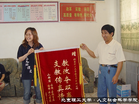 支教活动结束后,河津县教育和寿阳县教育局分别向人文社会科学院教育科学研究所赠送了锦旗,双方形成长期互助的意向。