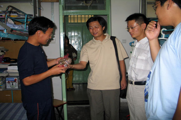 每逢佳节倍思亲,今年的中秋节恰逢国庆假期,新生来到学校也刚刚半个月。为了让这些刚刚离开父母开始大学生活的同学们尽快适应新环境,感受到学院的关怀,10月6日,学院副书记、副院长郝洪涛老师为2006级新同学送去月饼等慰问品,与大家欢度中秋。