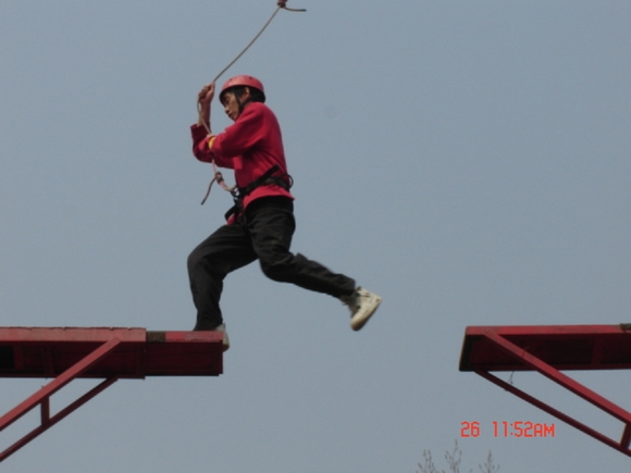 培训项目看似简单,又不那么容易。背摔,过山地、高空项目、过电网等。每一个队员既是在培养团队合作精神,也是挑战自我、挑战极限。