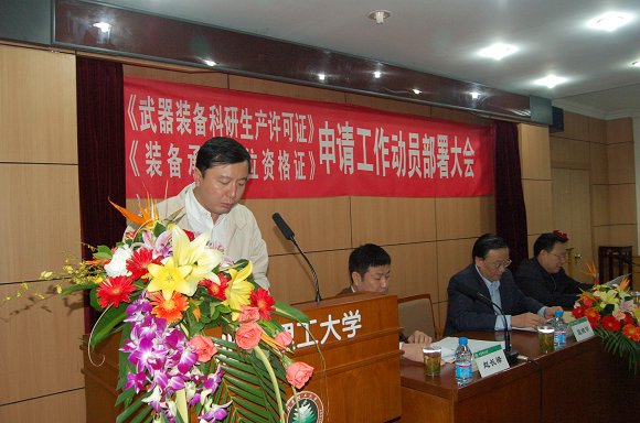 2006年10月24日,学校在逸夫楼学术报告厅召开了北京理工大学“申请《武器装备科研生产许可证》和《装备承制单位资格证》工作动员部署大会”。会议由校长助理、科技处处长陈杰同志主持。