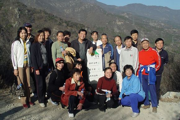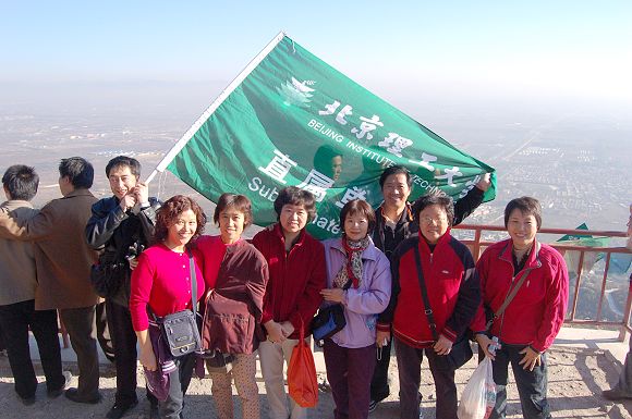 广大教职工登上了鹫峰顶峰,俯瞰北京的新面貌。