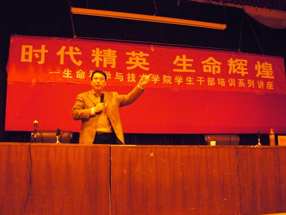 2006年11月24日,生命科学与技术学院分团 “时代精英 生命辉煌”学生干部培训系列讲座拉开帷幕。讲座的第一讲,分团委非常荣幸的邀请到了我校常务副校长李志祥教授。生命科学与技术学院党总支书记李兰东老师,副书记、副院长周连景老师以及分团委相关老师也参加了本次讲座。按照干部培训的要求,我院分团委、学生会、研究生会等各主要学生社团干部,班团干部以及一百余名入党积极分子参加了此次培训活动。
