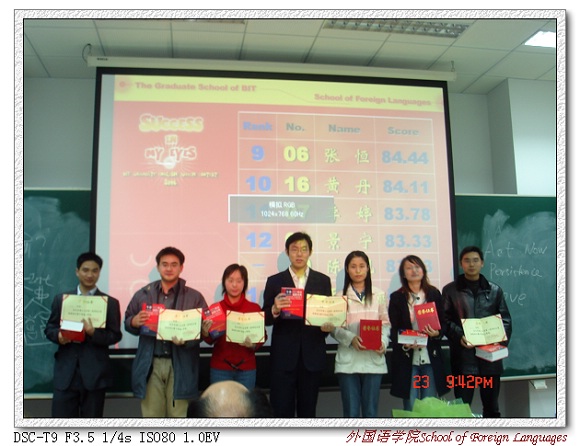 2006年11月23日晚7点,北京理工大学第一届研究生英语演讲比赛决赛在研究生楼301隆重举行。