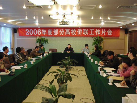 2006年12月1日,“2006年度部分高校侨联工作片会”在我校召开。来自清华大学、北京大学、北京大学医学部、中央民族大学、中国农业大学、北京外国语大学、首都师范大学、北京体育大学、北京理工大学等8所重点大学的统战部部长和侨联负责人参加了本次会议。我校侨联主席蒋本珊老师主持大会。与会侨联负责人分别向大家介绍了一年来学校侨务工作的开展情况,并围绕本次会议主题:“探索新时期高校侨联工作的新思路”就如何更好的发挥新归侨在学校建设发展中的作用? 如何增强高校侨联组织的凝聚力? 及如何更好地保护老归侨的权益? 等问题展开了热烈的讨论。就大家共同关注的几项事宜以会议纪要的形式上报有关上级部门,希望能得到工作支持。