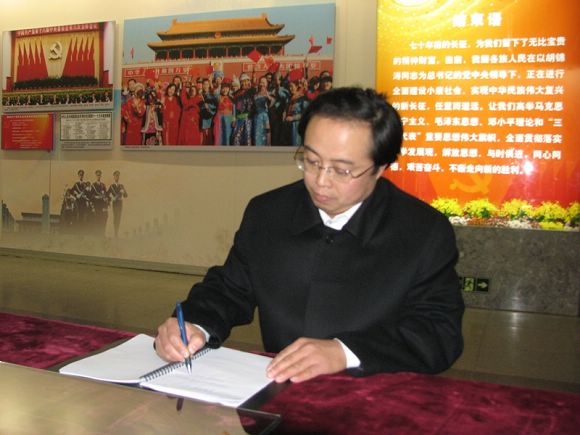 参观结束后,学院党委书记何明代表学院党委在留言簿上写下:“长征精神永存”!