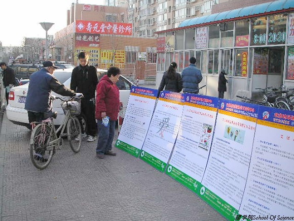 2006年12月3日星期天上午,理学院青年志愿者协会一行19人来到了学校附近的魏公村社区进行防治艾滋病知识宣传。冬日的寒风再强劲也抵不过青年志愿者们“关爱他人 服务社会”的热情,早上8点,志愿者们就准备好展板、宣传资料和活动用品,迎着朝阳出发了。