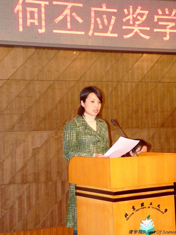 理学院副院长胡海云老师介绍何丕应奖学金设立情况。胡院长是何丕应老师的学生,胡院长回忆了何老师当年对她的谆谆教诲,师生情怀永难忘,情到深处,语无凝噎。