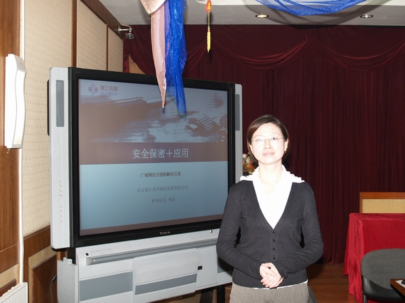赵蓓博士向参加会议人员介绍了计算机网络攻防对抗技术实验室“十五”期间取得的科研成果,现场演示了“信息内容监控”等四套主要系统,使各位专家对实验室的成果有了更为深入的了解。