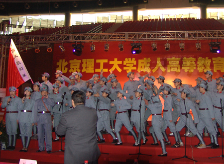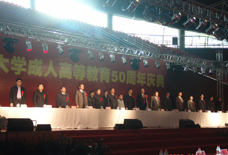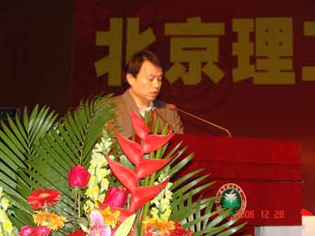 2006年12月28日下午,北京理工大学庆祝成人高等教育创办50周年庆典大会在校文化体育中心隆重举行。中国科协书记处书记、中国继续工程教育协会副理事长、国际继续工程教育协会副主席冯长根教授、国防科工委人事教育司张京麒处长、全国高校继续教育学会副理事长兼秘书长、全国高校现代远程教育协作组秘书长严继昌教授、北京成人教育协会会长陈兴斌教授等领导应邀出席了庆典大会。校党政领导焦文俊、匡镜明、李志祥、杨宾、候光明、赵平、孙逢春、杨树兴、张维维、赵显利、李和章、中国科学院院士、中国工程院院士、名誉校长王越及原校领导出席了大会。应邀参加庆典活动的还有北方工业集团公司人力资源部、北方装备集团公司人力资源部领导以及清华大学、北京大学、中国人民大学、北京航空航天大学、中国农业大学、北京邮电大学、北京外国语大学、对外经贸大学、中国石油大学(北京)、西北工业大学、南京理工大学、南京航空航天大学、哈尔滨工程技术大学、华南师范大学等兄弟院校的代表和北京、山西、浙江、广西、河北、辽宁、内蒙古、河南、安徽、福建、江西、青海等省市校外学习中心的代表。学校各部、处、学院领导也应邀出席了大会。大会由常务副校长李志祥主持。