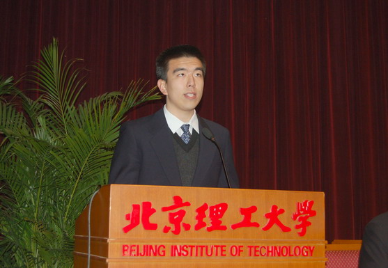 T-More创新学生奖一等奖获得者、信息科学技术学院2004级学生钱天翼代表获奖学生发言,他结合自己的学习经历,与在场的同学分享了他自己关于如何在大学期间不断丰富思想、培养专业兴趣、合理安排时间和加强体育锻炼的经验与心得,他表示:“荣誉是对我们这些获奖同学过去成绩的肯定,更重要的是明天的努力。二十一世纪是知识经济的时代,知识是我们的财富,学习是我们必备的能力,创新精神是我们不断前进的源动力。学校有着良好的学习和成长环境,为我们提供了广阔的科学研究和创新空间,需要的就是我们开发自己的创新思维,让它在这片肥沃的土壤上开花结果。让北京理工大学早日成为国际知名,国内一流的研究型大学!”