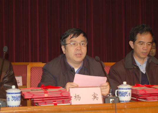 党委副书记、副校长杨宾老师宣布了“关于表彰2005-2006学年优秀学生标兵、优秀学生、优秀学生干部、先进班集体、优良学风班的决定”,并向获奖的同学表示祝贺。今年共有15个先进班集体、24个优良学风班、109名优秀学生标兵、908名优秀学生、334名优秀学生干部、285名国家奖学金获得者、近300名社会捐助奖学金获得者、270余名各类学科知识竞赛获得者以及暑期社会实践优秀团队和个人受到表彰。