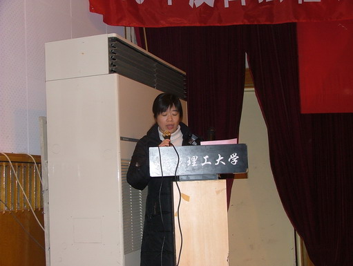 在主持人介绍嘉宾之后,自强社社长陈晓燕对2006年自强社的工作进行了总结。她通过对一年来社团工作的回顾,诠释了自强社为贫困生扮演着“传递关爱的平台”、“展示自我的舞台”、“学校资助工作的助手”、“温暖的家”四个角色的具体涵义。并对学校领导一直以来的大力支持、学生工作处老师的悉心指导表示了诚挚的感谢。